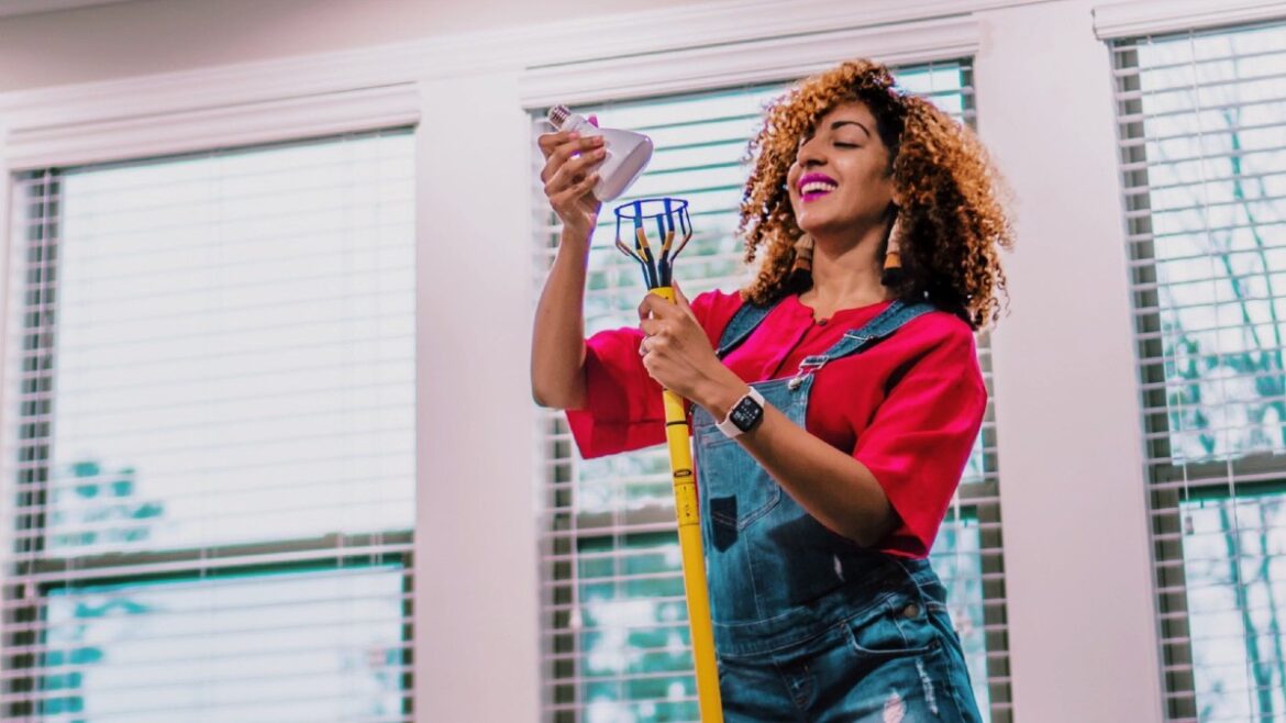 Ashley Renne Nsonwu sets up a smart dimmer switch in her solar-powered smart home. Photo via @HeyAshleyRenne Twitter